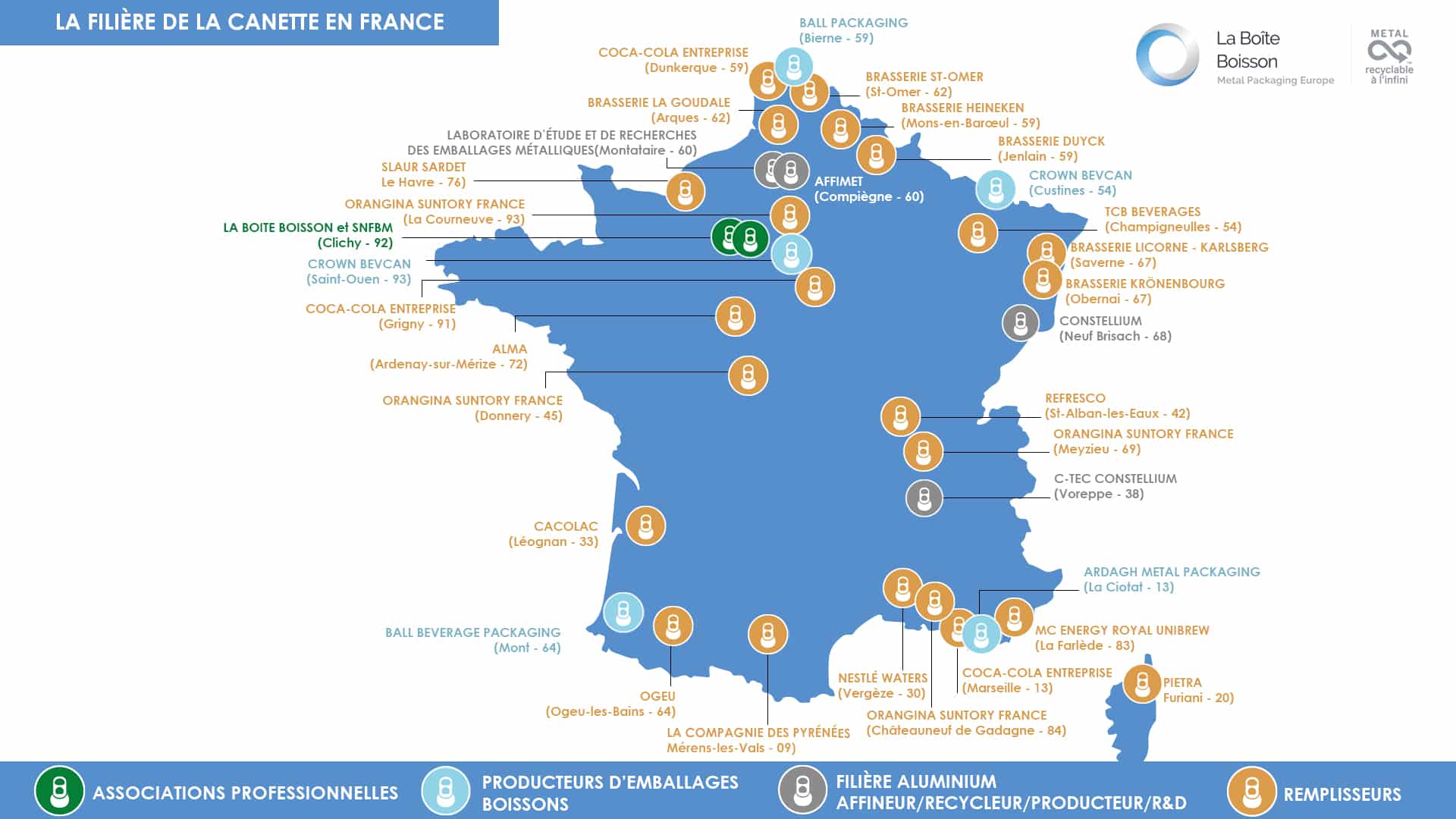 En France, la filière des canettes compte 34 sites de production, centres de Recherche et Développement et bureaux.
